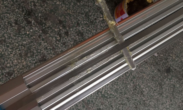 如圖掀起密封鋼帶用帶油的鋼片(或其他的小工具)伸入將油脂涂抹于鋼帶表面,然后將其貼合,保養(yǎng)完成。