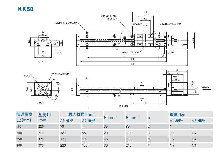 錦榮直線模組KK5002C-250A1-F0,上銀KK直線模組/工業(yè)機(jī)器人特點(diǎn)如下:
