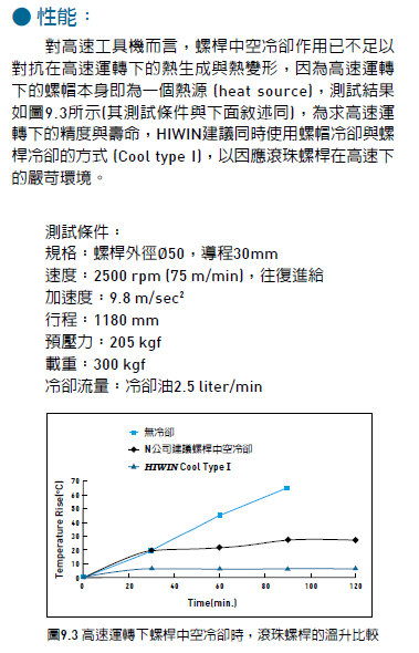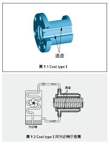 上銀滾珠絲桿,超高值Dm-N值-cool Type 1 搭配絲杠中空冷卻可得到最佳的溫控品質(zhì)與精準(zhǔn)度,此形式產(chǎn)品非常適合用在高速工具機(jī)和高速加工中心.cool Type 1 滾珠絲杠在螺帽內(nèi)通過強(qiáng)制冷卻液體,以降低滾珠絲杠操作在高速運(yùn)轉(zhuǎn)時(shí)的熱源產(chǎn)生的熱膨脹現(xiàn)象,以達(dá)到高速化和高精度的目的.,液體在螺帽的通道內(nèi)循環(huán)流動(dòng),并與冷卻機(jī)進(jìn)行熱交換作用,同時(shí)搭配絲杠中空冷卻可得到最佳的溫控品質(zhì)與精準(zhǔn)度.