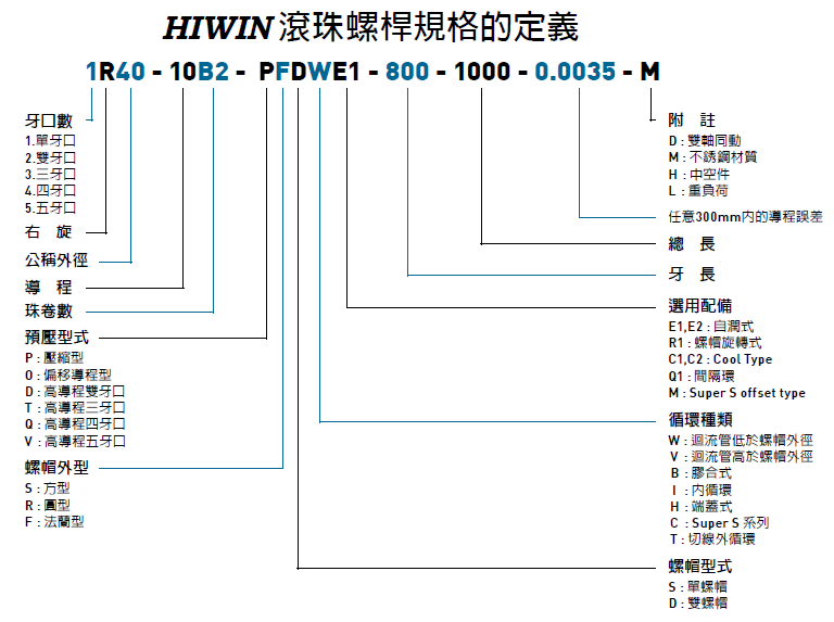 螺帽型式:FSV , FSW , PFDW , OFSW , DFSV , FSH , FSI 等