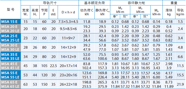 PMI-臺灣銀泰直線導軌MSA20E滑塊是一款法蘭型滑塊,也叫帶耳朵的滑塊,滑塊的尺寸為72.9*63,滑塊上有4個M6的螺紋孔,其孔距為53*40,MSA20E滑軌的安裝孔距為60,MSA15E滑塊與滑軌的組合高度為30。所有尺寸完全與臺灣上銀直線導軌HGW20CC相同。兩者之間可相互替換,在防塵方面,銀泰直線導軌比上銀直線導軌做得更佳出色。