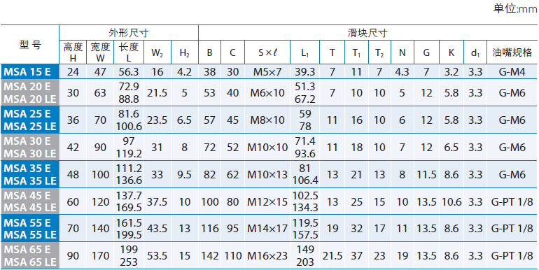 PMI-銀泰直線導(dǎo)軌MSA35LE滑塊是一款法蘭加長型滑塊,也叫帶耳朵的滑塊,滑塊的尺寸為136.6*100,滑塊上有4個(gè)M10的螺紋孔,其孔距為82*62,MSA35LE滑軌的安裝孔距為80,MSA35LE滑塊與滑軌的組合高度為48。所有尺寸完全與臺(tái)灣上銀直線導(dǎo)軌HGW35HC相同。兩者之間可相互替換,在防塵方面,銀泰直線導(dǎo)軌比上銀直線導(dǎo)軌做得更佳出色。