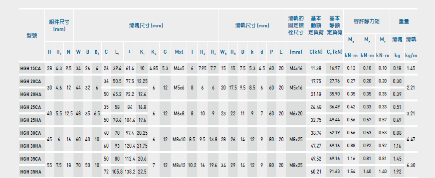 臺(tái)灣上銀直線導(dǎo)軌HGH35CA特點(diǎn):
