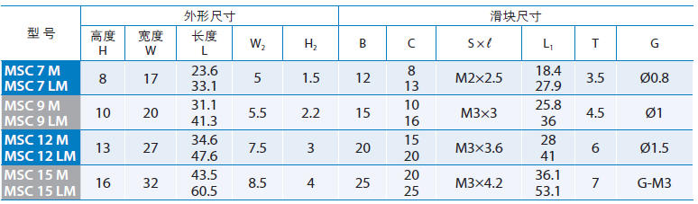 PMI-銀泰微小型直線導(dǎo)軌MSC7LM滑塊是一款加長(zhǎng)型微小型滑塊,采用不銹鋼材質(zhì),滑塊的尺寸為33.1*17,滑塊上有4個(gè)M2的螺紋孔,其孔距為12*13,MSC7LM滑軌的安裝孔距為15,MSC7M滑塊與滑軌的組合高度為8。所有尺寸完全與臺(tái)灣上銀直線導(dǎo)軌MGN7H相同。兩者之間可相互替換,在防塵方面,銀泰直線導(dǎo)軌比上銀直線導(dǎo)軌做得更佳出色。性價(jià)比更高.