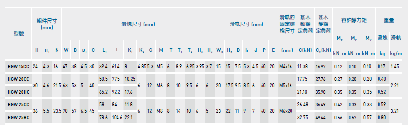 上銀導(dǎo)軌滑塊HGW25CC實(shí)物圖和參數(shù)如下: