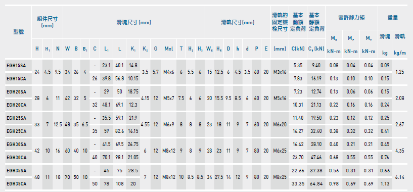 低組裝方形上鎖式型號:EGH15SA EGH15CA EGH20SA EGH20CA EGH25SA EGH25CA EGH30SA EGH30CA