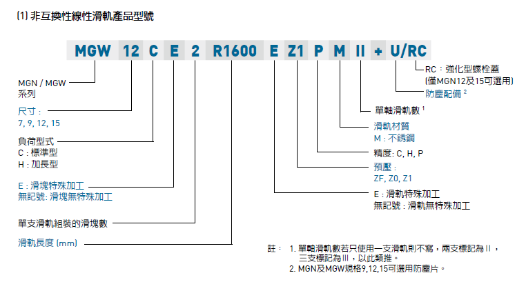 2.滑塊、滑軌材質(zhì)提供不銹鋼及合金鋼兩種。不銹鋼材質(zhì)之線性滑軌,包含滑塊、滑軌及其它金屬配件如鋼珠、保持器等,皆使用不銹鋼材質(zhì)。具備防銹特性。