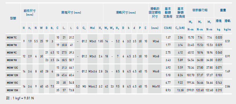 上銀直線導軌MGW9H,臺灣上銀加寬型導軌MGW9H